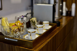Área de conveniência com café, água, chá e lanches de forma gratuita.