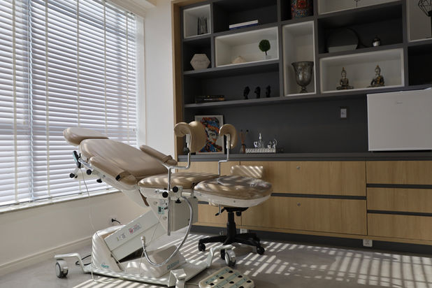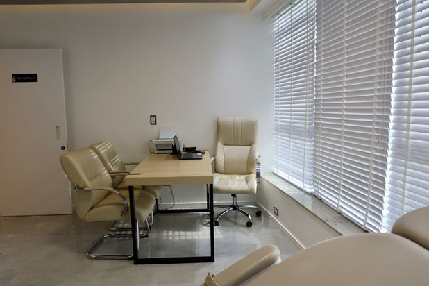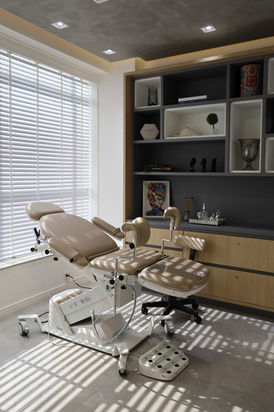 Moderno e bem decorado, possui banheiro exclusivo, frigobar, máquina café expresso e espelho vertical. Perfeito para Cirurgião Plástico, Dermatologista, Ginecologista e profissionais que desejem um consultório mais elegante.